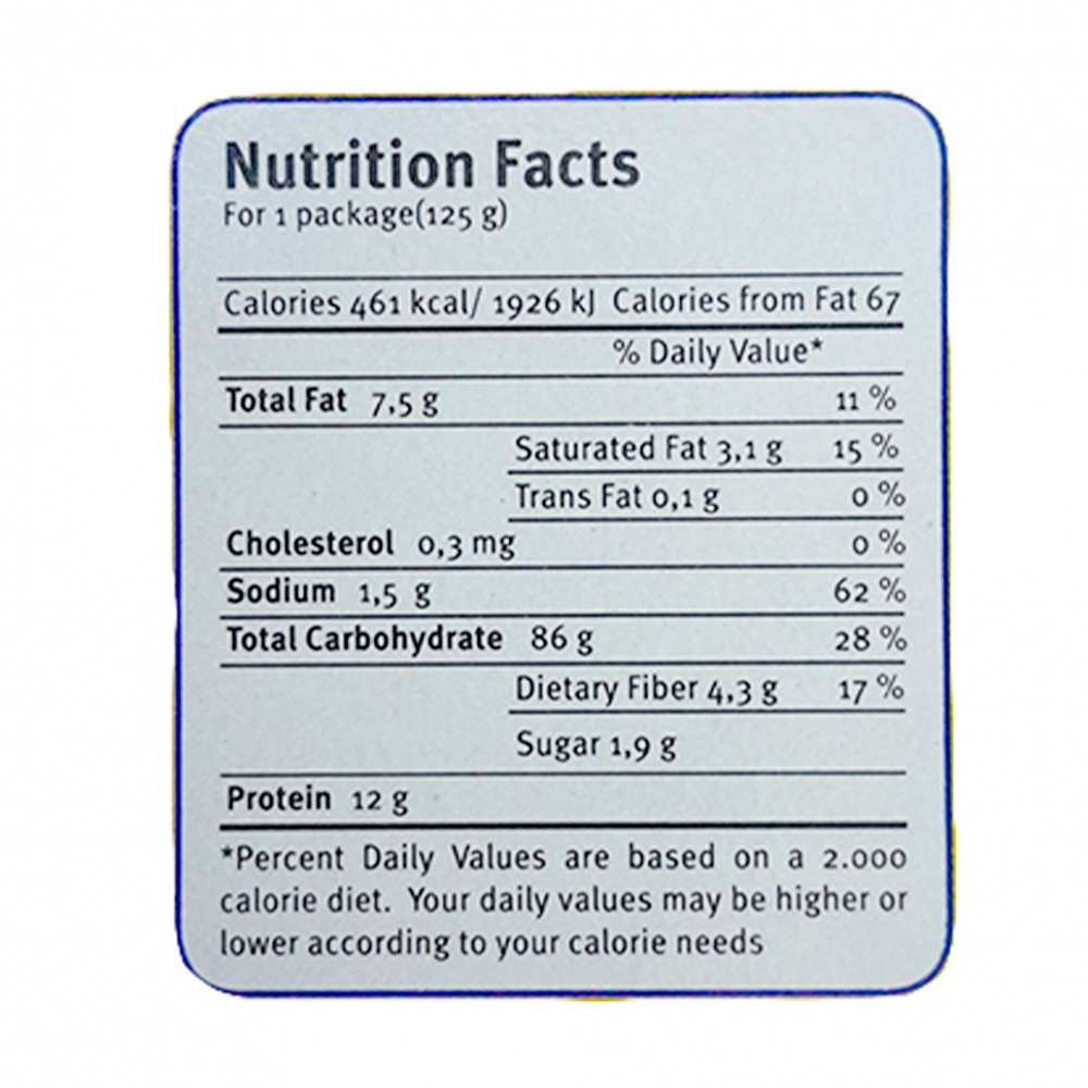 Ingredients: Potato, vegetable oil powder, skimmed milk powder (5%), salt, milk proteins, emulsifier (mono- and diglycerides of fatty acids), thickening agent (carboxymethylcellulose), antioxidants (ascorbic acid), butter flavor, coloring (beta-carotene). Contains dairy products. May contain traces of gluten, soy protein, celery, eggs, and almonds. Country of origin: Turkey